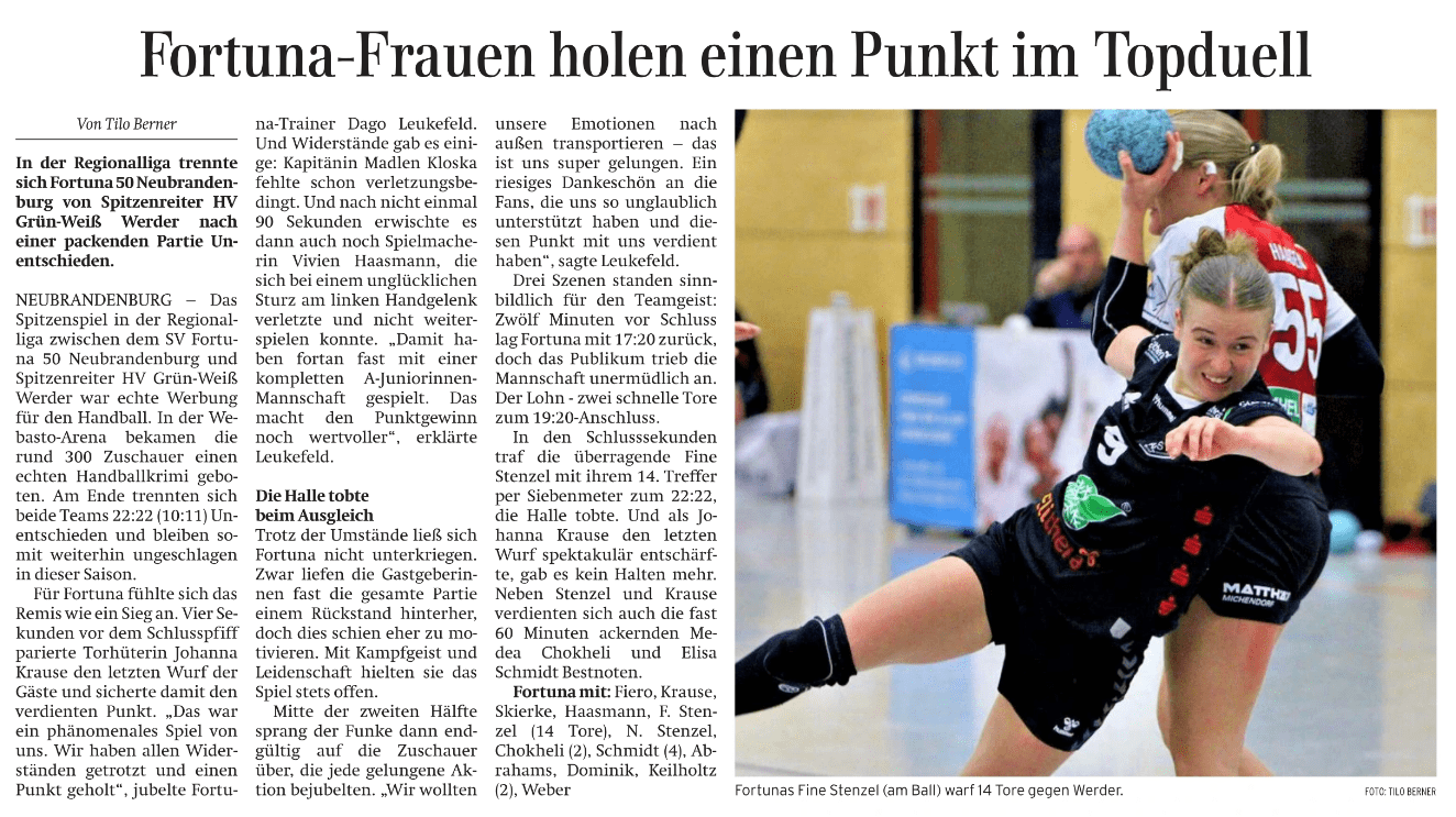 Nordkurier 29.10.2025: Handballduell mit Rekord-Potenzial: Ticketverkauf gestartet Verfasst von SV Fortuna 50 am 29. Oktober 2025.