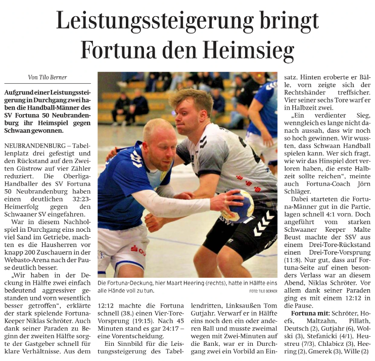 Nordkurier 02.04.2026: Leistungssteigerung bringt Fortuna den Heimsieg