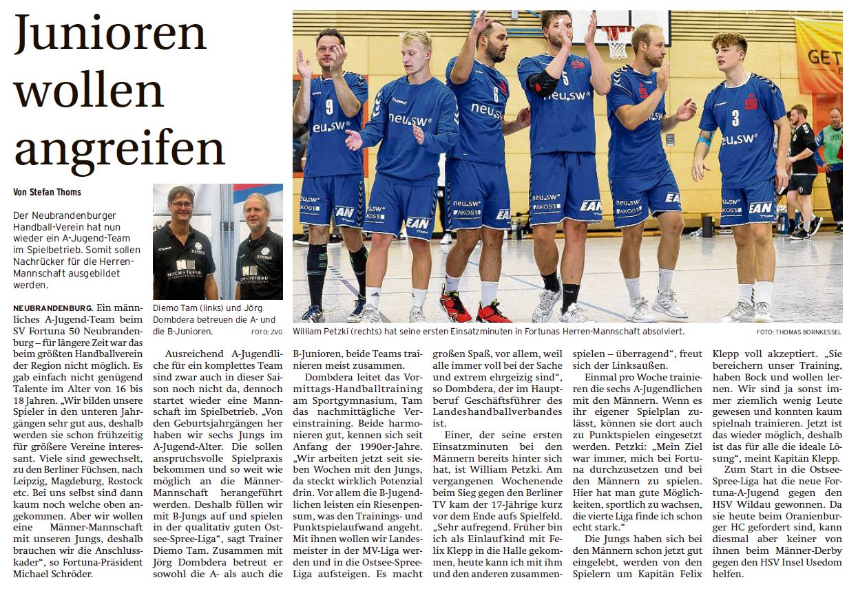 Die Bereitschaft sich noch stärker für den Handballsport in Neubrandenburg zu engagieren, wurde durch das Präsidium mit Begeisterung aufgenommen. So war es für das Fortuna-Präsidium um Präsident Michael Schröder überhaupt keine Frage, Mario Labenz zur nächsten Präsidiumssitzung einzuladen.