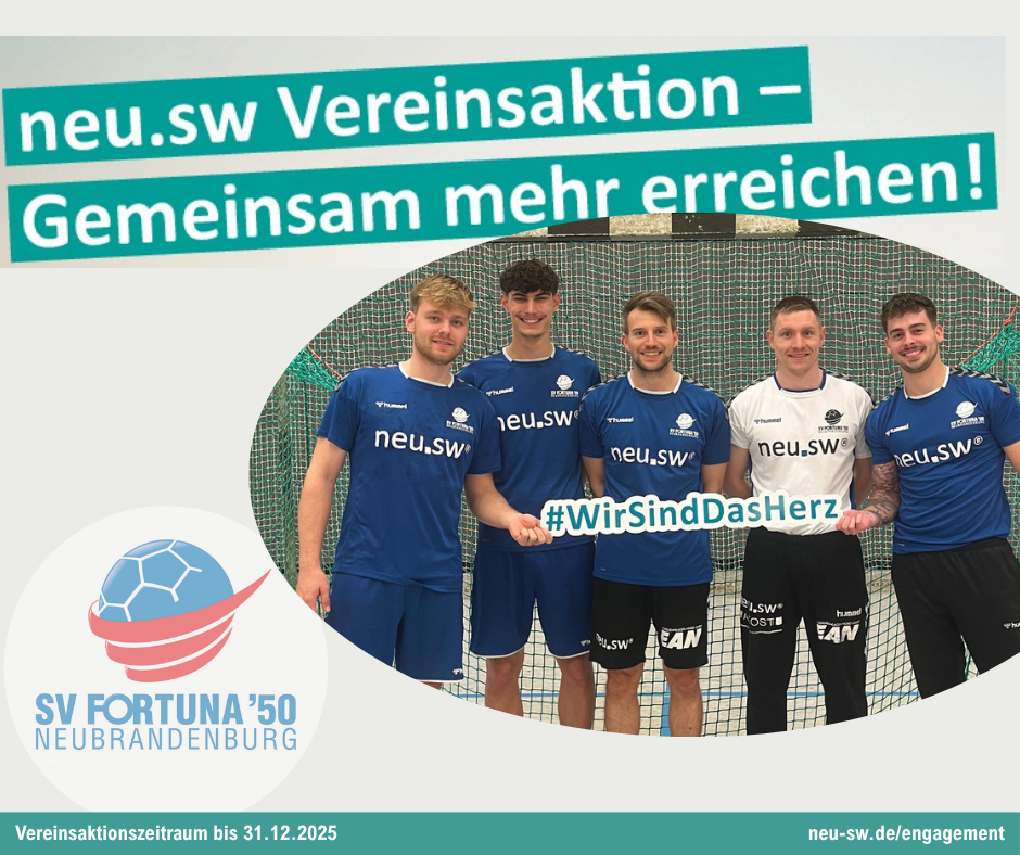 Die neu.sw haben ihre große Vereinsaktion gestartet – und natürlich ist auch der SV Fortuna ’50 Neubrandenburg e.V. mit dabei.