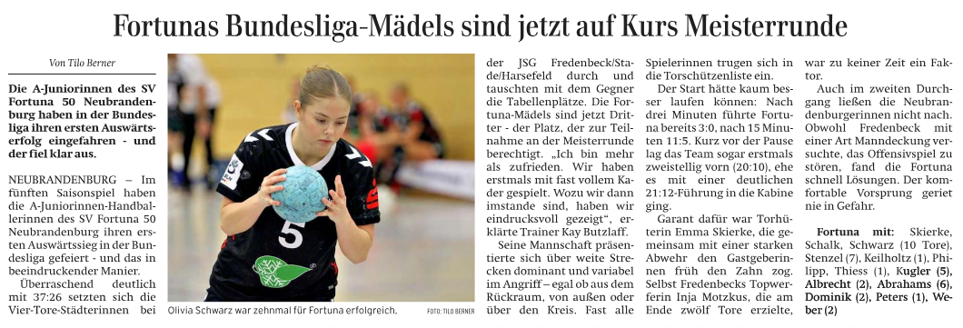 Nordkurier 17.11.2025: Fortunas Bundesliga-Mädels sind jetzt auf Kurs Meisterrunde